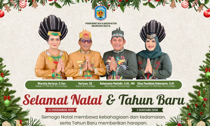 “Atas nama pribadi, keluarga, dan Pemerintah Kabupaten Murung Raya, saya bersama Wakil Bupati serta seluruh jajaran perangkat daerah mengucapkan selamat merayakan Natal 25 Desember 2025 dan Tahun Baru 2026. Semoga damai dan sukacita Natal dapat dirasakan oleh seluruh masyarakat Murung Raya,” ujar Heriyus, Rabu (24/12/2025).