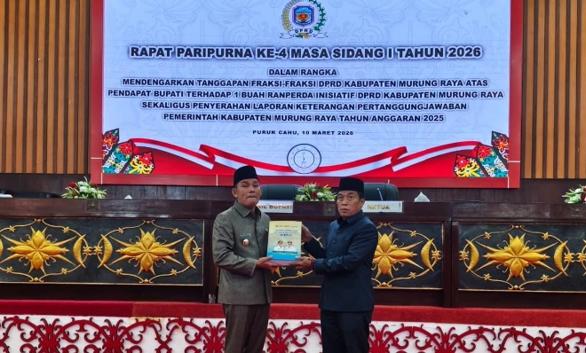 PURUK CAHU, ajun.or.id – Pemerintah Kabupaten Murung Raya menyampaikan Laporan Keterangan Pertanggungjawaban (LKPJ) Bupati Murung Raya Tahun Anggaran 2025 dalam Rapat Paripurna ke-4 Masa Sidang I Tahun 2026 di ruang rapat paripurna DPRD Murung Raya, Selasa (10/3/2026).