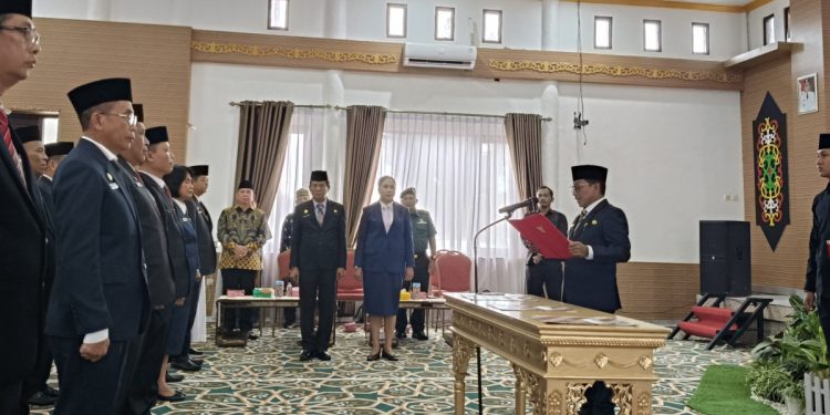 PURUK CAHU, ajun.or.id – Sebanyak 14 Pejabat Pimpinan Tinggi (PPT) Pratama Eselon II di lingkup Pemerintah Kabupaten Murung Raya resmi dilantik dan diambil sumpah jabatannya oleh Bupati Murung Raya, Heriyus. Prosesi pelantikan berlangsung di Aula Rumah Jabatan (Rujab) Bupati, Jalan Jenderal Sudirman, Kota Puruk Cahu, Sabtu (20/9/2025).