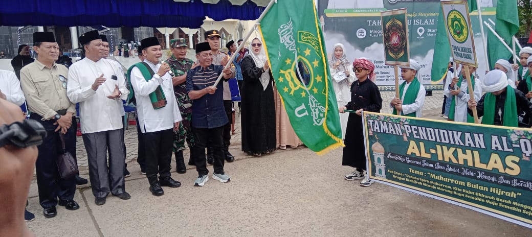 PURUK CAHU, ajun.or.id – Bupati Kabupaten Murung Raya (Mura), Heriyus, S.E, bersama dengan Wakil Bupati, Rahmanto Muhidin, S.H.I., M.H, melepas langsung kegiatan Pawai Akbar Muharram 1447 H di halaman Masjid Agung Al-Istiqlal Murung Raya, Minggu (20/7/2025).