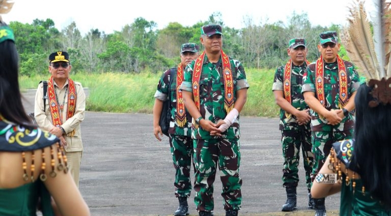 PURUK CAHU, ajun.or.id – Bupati Murung Raya (Mura), Heriyus dan Ketua DPRD Murung Raya, Rumiadi bersama unsur Forkopimda menyambut kedatangan Wakil Kepala Staf Angkatan Darat (Wakasad), Letnan Jenderal TNI Tandyo Budi Revita dan Gubernur Kalteng, Agustiar Sabran, Pangdam XII/Tpr, Mayjen TNI Jamallulael, Danrem 102/Pjg, Brigjen TNI Wimoko, Waaspers Kasad Bid. Renpers Spersad, Brigjen TNI Ade Rony dan Kasi Ops Kasrem 102/Pjg, Kol Inf M.Ishak H Baharuddin.
