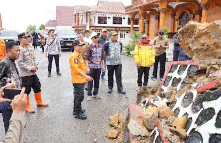 PURUK CAHU, ajun.or.id – Bupati Murung Raya, Heriyus, bersama Plt. Sekda Murung Raya, Sarwo Mintarjo, serta unsur Forkopimda dan sejumlah Perangkat Daerah dan stakeholder terkait melakukan peninjauan langsung ke beberapa titik yang terdampak bencana pasca hujan deras dengan intensitas tinggi di wilayah Murung Raya, Sabtu (4/10/2025).