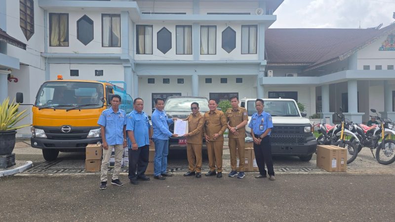 PURUK CAHU, ajun.or.id – Bupati Murung Raya (Mura), Heriyus, didampingi Wakil Bupati Murung Raya, Rahmanto Muhidin dan pejabat terkait menyerahkan bantuan sarana dan prasarana operasional Perumda Danum Pomolum Kabupaten Murung Raya.