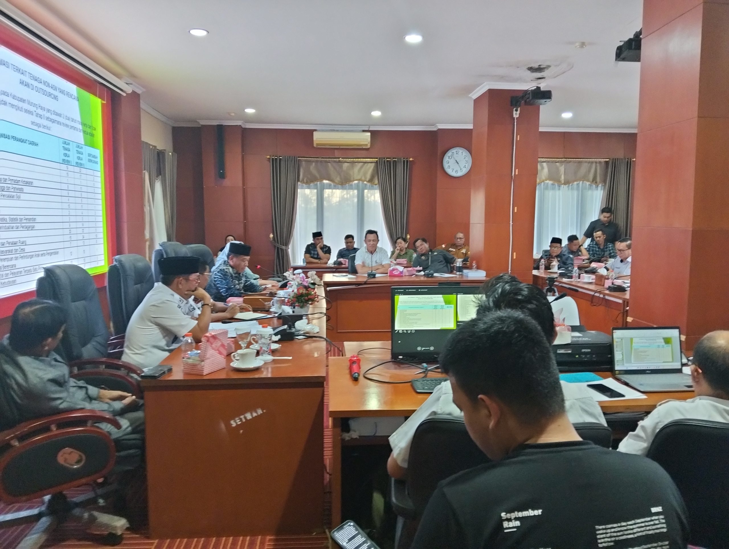 Murung Raya, ajun.or.id – Dewan Perwakilan Rakyat Daerah (DPRD) Kabupaten Murung Raya bersama Pemerintah Kabupaten (Pemkab) Murung Raya (Mura) menggelar Rapat Dengar Pendapat (RDP) yang membahas penataan tenaga kontrak atau Non Aparatur Sipil Negara (Non ASN) di lingkungan Pemerintah Daerah setempat.