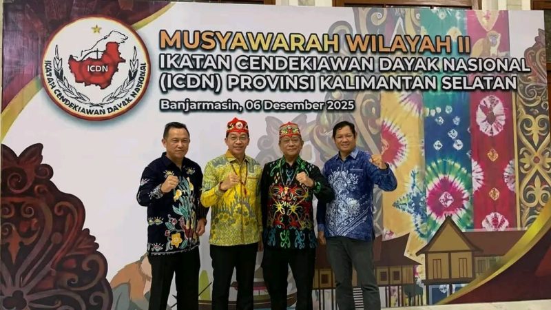 Banjarmasin, ajun.or.id – Wakil Ketua Komisi II DPRD Murung Raya, Johansyah, S.E., M.I.P., menghadiri pelantikan Ikatan Cendekiawan Dayak Nasional (ICDN) se-Kalimantan Selatan di Mahligai Pancasila, Banjarmasin, Sabtu (06/12/2025) malam. Pelantikan tersebut dipimpin langsung oleh Ketua Umum DPN ICDN, Dr. Ir. Willy M. Yoseph, M.M.