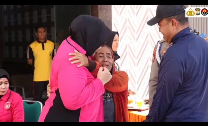 Pemandangan haru terlihat dikala Kombes Pol. Dr. Mokhamad Ngajib, S.I.K., M.H menunjuk salah satu masyarakat (Ibu sri) yang menjadi pemenang untuk diberangkatkan Umroh ke tanah suci.