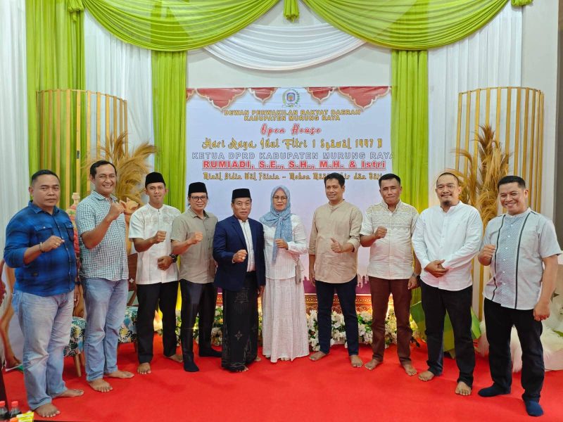 PURUK CAHU, ajun.or.id – Ketua DPRD Kabupaten Murung Raya menggelar acara open house Idul Fitri 1447 H/2026 di kediamannya, Sabtu (21/3/2026), usai pelaksanaan Salat Idul Fitri. Kegiatan ini menjadi momentum untuk mempererat silaturahmi antara pemerintah daerah dan masyarakat.