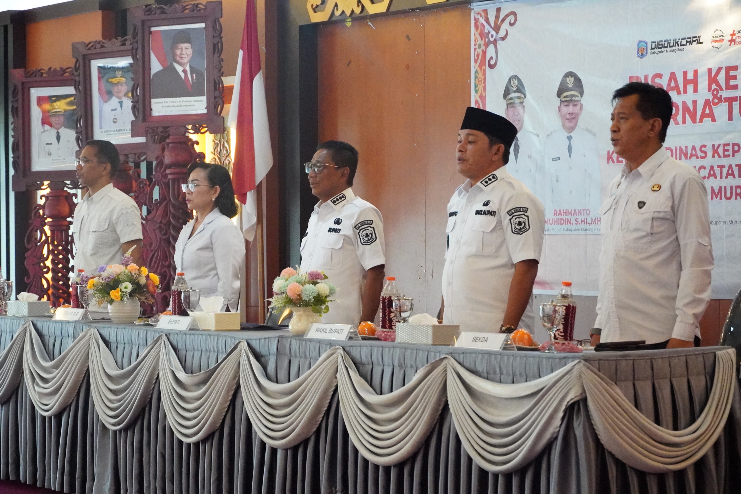 Hadir dalam kesempatan tersebut Bupati Murung Raya Heriyus, Wakil Bupati Rahmanto Muhidin, Plt Sekda Drs. Sarwo Mintarjo, Asisten I Sekda Rahmat K. Tambunan, unsur Forkopimda, para kepala perangkat daerah, serta seluruh jajaran pegawai Disdukcapil.