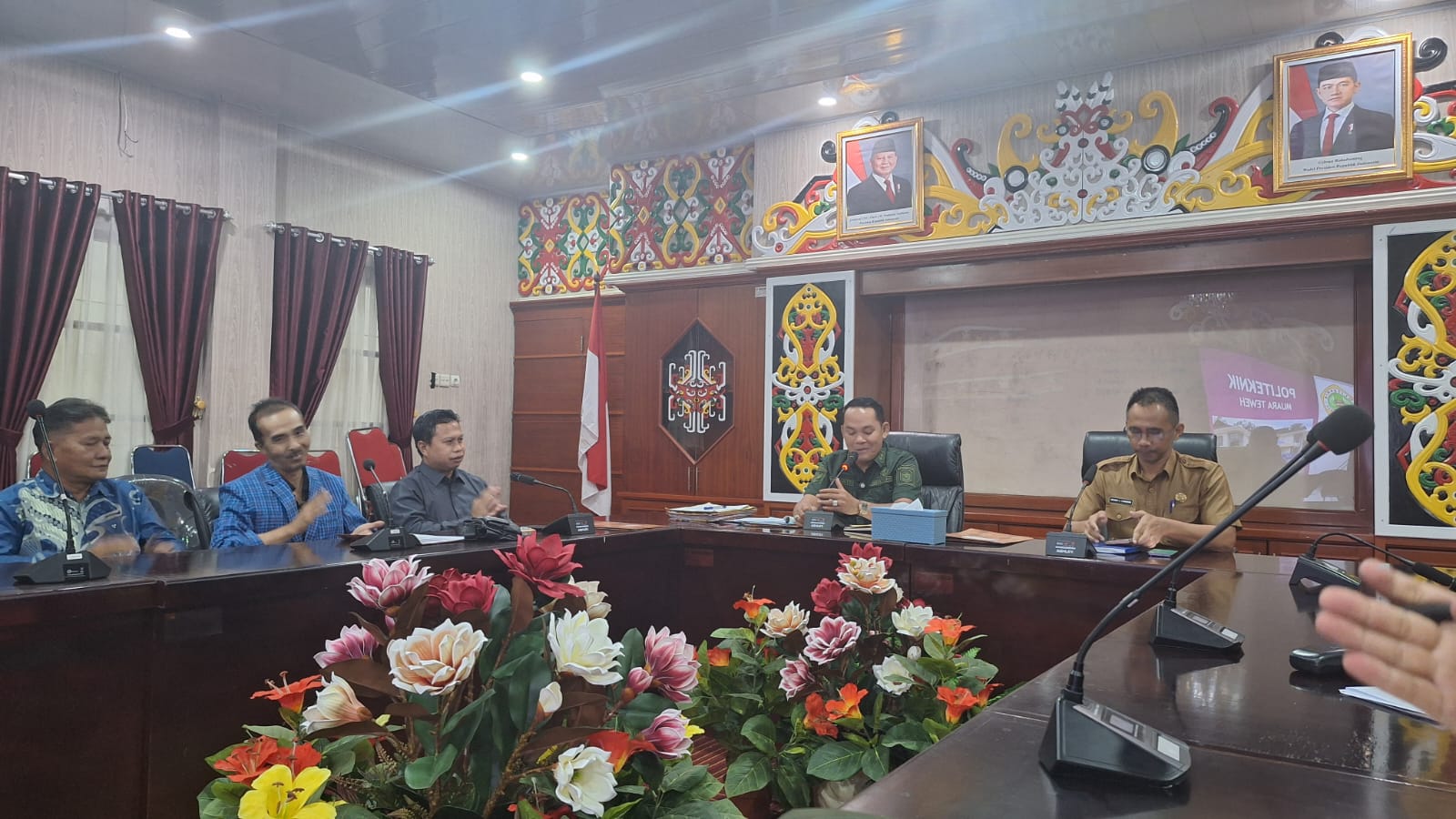 Wakil Bupati Murung Raya, Rahmanto Muhidin, S.H.I., M.H didampingi Asisten I Setda Murung Raya Rahmat K. Tambunan, AP., M.IP bersama jajaran Dinas Pendidikan dan Bagian Pemerintahan menyambut baik maksud dan tujuan dari Politeknik Muara Teweh untuk menyampaikan beberapa hal program pendidikan vokasi di Politeknik yang kiranya kedepan dapat dikerjasamakan dengan Pemerintah Daerah terutama perihal kerjasama pendidikan program beasiswa bagi masyarakat Murung Raya.