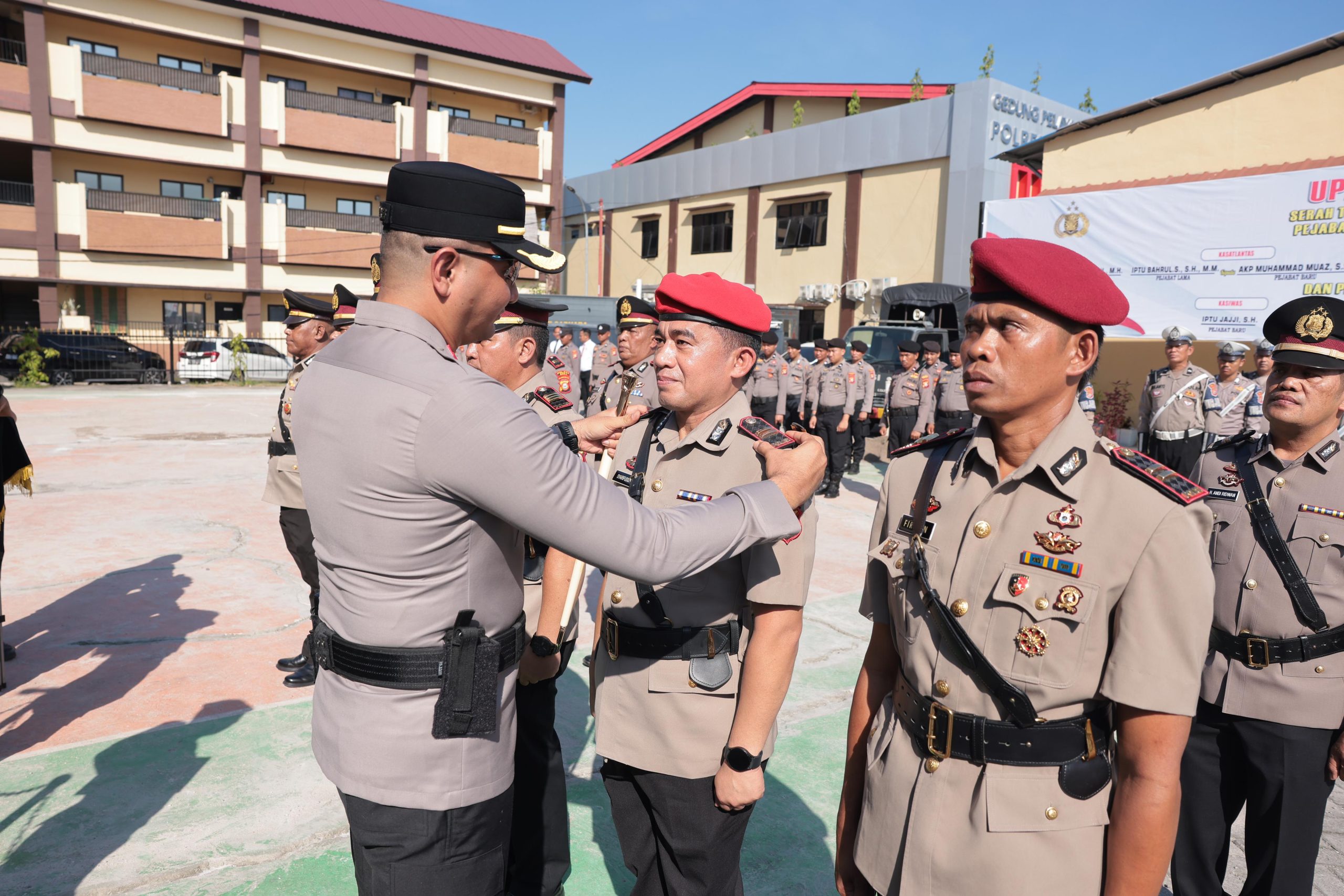 Dalam upacara tersebut, jabatan Kasat Samapta diserahterimakan dari AKP Aslamuddin kepada AKP Cahyadi, S.H., M.H. Kemudian, jabatan Kasat Lantas diserahkan dari IPTU Bahrul, S., S.H., M.M. kepada AKP Muhammad Muaz, S.Sos., sedangkan Kasat Narkoba dari IPTU Syarifuddin, S.H., M.H. kepada IPTU Firman, S.H., M.H.