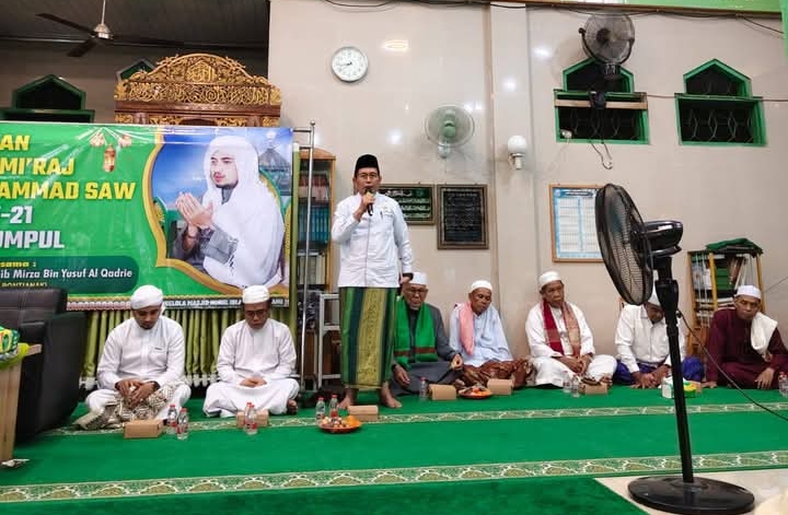 PURUK CAHU, ajun.or.id – Ketua Komisi I DPRD Kabupaten Murung Raya, Rejikinoor, S.Sos., menghadiri Peringatan Isra Miraj Nabi Muhammad SAW dan Haul Guru Sekumpul yang digelar di Masjid Nurul Islam, Jalan Veteran, Kota Puruk Cahu, Rabu (14/1/2026) malam.