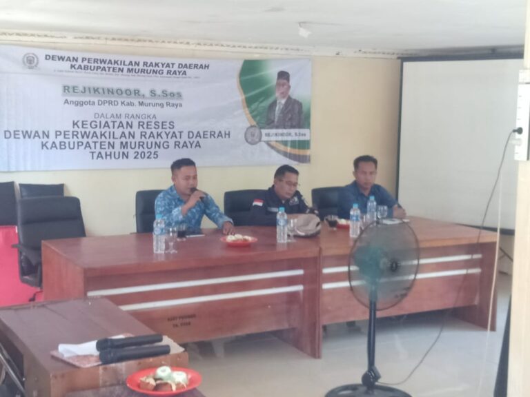 PURUK CAHU, ajun.or.id – Ketua Komisi 1 DPRD Kabupaten Murung Raya Rejikinoor, S.Sos, melaksanakan kegiatan reses perorangan di Desa Muara Sumpoi, Kecamatan Murung, Selasa (17/2025).