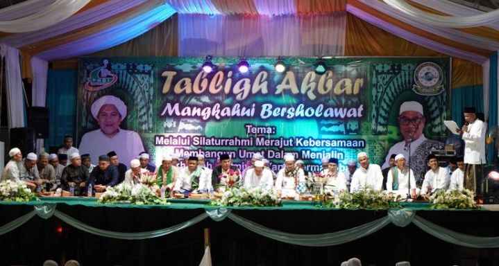 PURUK CAHU, ajun.or.id – Ribuan jamaah memadati lapangan terbuka Desa Mangkahui dalam kegiatan Tabligh Akbar “Mangkahui Bersholawat”, Jumat (24/10/2025). Acara keagamaan ini mengusung tema “Melalui Silaturahmi Merajut Kebersamaan, Membangun Umat dalam Menjalin Ukhuwah Islamiyah yang Bermartabat.”