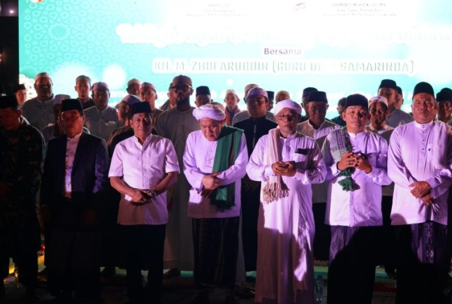 PURUK CAHU, ajun.or.id – Ribuan masyarakat Kabupaten Murung Raya (Mura) memadati halaman Masjid Agung Al-Istiqal Puruk Cahu untuk menghadiri kegiatan Tabligh Akbar dan Murung Raya Bershalawat bersama KH. M. Zhofaruddin atau yang akrab disapa Guru Udin Samarinda, Kamis (23/10/2025) malam.