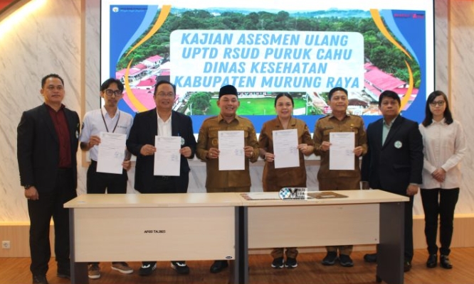 Tampak kegiatan tersebut diakhiri dengan penandatanganan berita acara asesmen ulang yang disaksikan langsung oleh Wakil Bupati Murung Raya, Rahmanto Muhidin beserta jajaran terkait. (helmi).